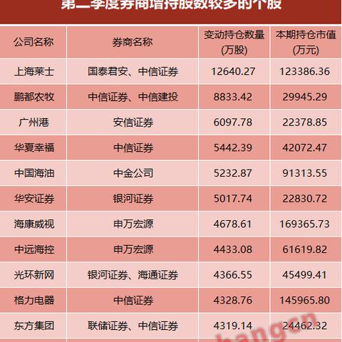 從券商的最新持股情況來(lái)看,市場(chǎng)動(dòng)向主要表現(xiàn)在以下幾個(gè)方面:
