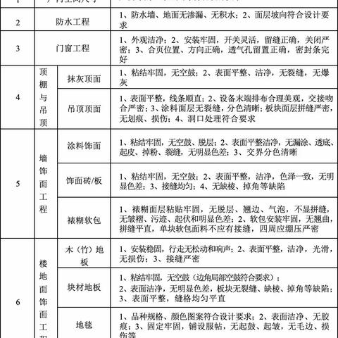 1、防水等級(jí):分為一級(jí)、二級(jí)、三級(jí)和四級(jí),各級(jí)對(duì)應(yīng)不同的防水要求和措施。